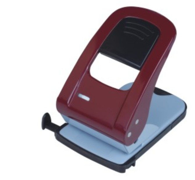 Standard office punches that produce 2 holes 80mm apart in paper for binding in box files, ring binders, etc. Punching capacities 30 sheets of 80gsm paper Available plastic with metal construction Colour: red