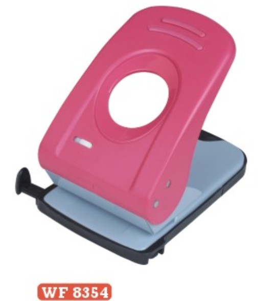 Standard office punches that produce 2 holes 80mm apart in paper for binding in box files, ring binders, etc.