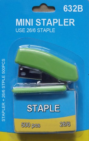 Features and Specifications: ITEM No.:HS632B SIZE(available in staples):#26/6 PAPER SHEET:12SHEETS PACKAGE:1/12/144 with #26/6 staples in blister card G/N:12/10KGS CARTON SIZE:41*32.5*31CM