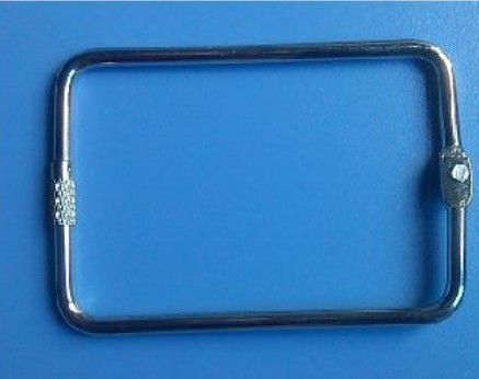 Rectangle shaped screw lock ring is made of metal , these goods are nickel finish, more durable using for binding,rectangle shaped screw lock ring has threesizes:90mm,120mm,150mm,,also have D shaped screw lock rings,packgae can be bulk or on your demand.