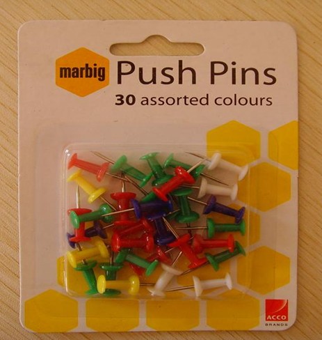 Push pins packaged in blister card ,30pcs/card ,assorted colors .。push pin in blister card is more safety ,avoiding hurt by you hand ,many colors you can choose when you decorate the party, room ,club , everywhere seems fashion,easy and clearly.