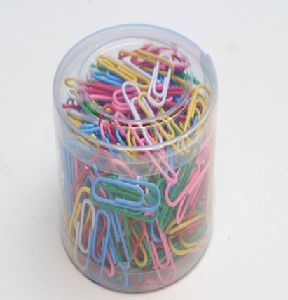 vinyl coated assorted colors paper clips can be :25mm,28mm,32mm,50mm in pvc drum , easy to take ,economical and environmental .