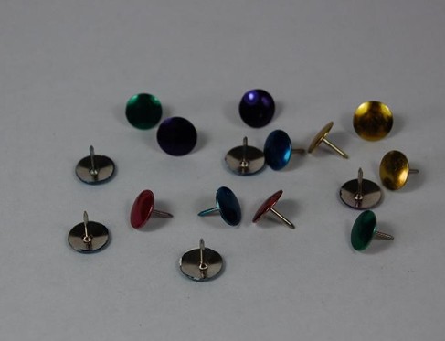 thumtacks is oxi finishing,50pcs/box or 100pcs/box, , we also has colored thumbtacks,vinyl coated thumbtacks,copper colored thumtacks ,decorating place is needed.