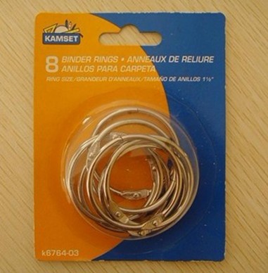 Loose leaf rings ,sometimes is called book binding rings,card rings ,hinged snap rings ,it depends on different industry. it is made of all metal and nickel finish , circle type makes you save more energy when you take large bags,making the lever files more tidy.blister card package avoides rusty,more durable using ,loose leaf rings size has: 14mm 19mm 25mm 32mm 38mm 50mm 63mm 75mm.blister card package is more easy take and looks more clearly.