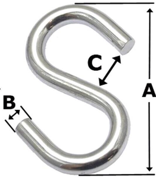 This S hook is made of Stainless steel 316 , it is also for rigging parts or other safety tool . surface is polished . SIZE :4x35mm A :35MM B:4MM C:7.2MM Packaged in opp bag or demand by customer